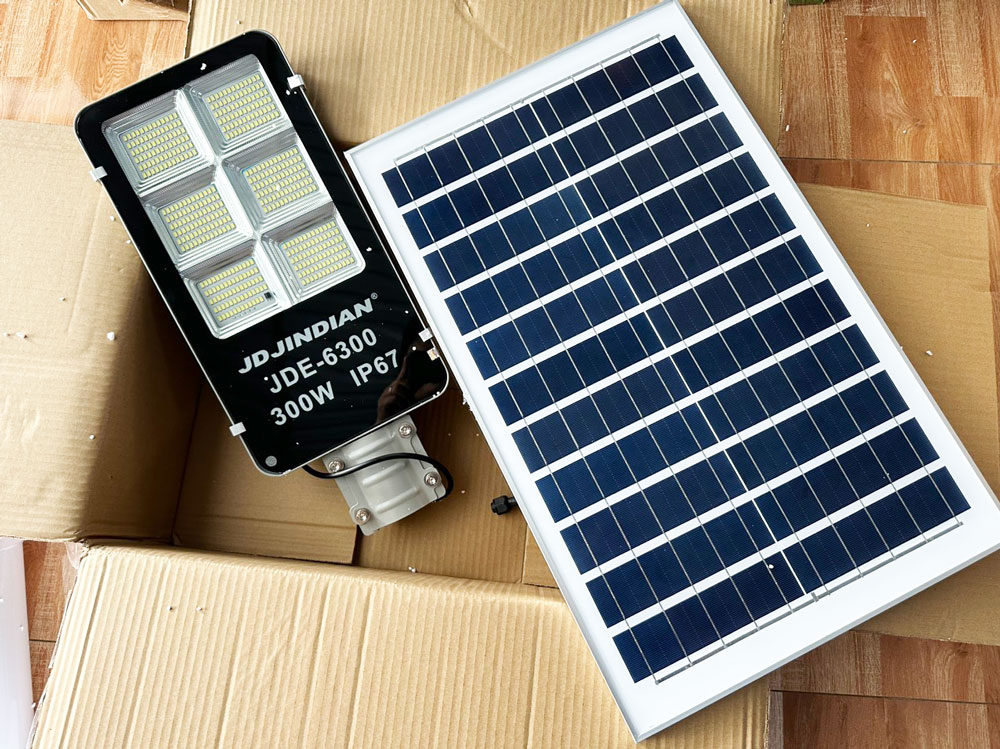 Đèn đường năng lượng mặt trời 300W của Jindian JDE-6300 là sản phẩm công nghệ mới với nhiều cải tiến nổi bật của Jindian. Tích hợp 527 bóng LED cao cấp 5730 SMD với tuổi thọ cao và khả năng chiếu sáng hoàn hảo, bộ đèn có dung lượng pin lưu trữ lớn có thể chiếu sáng liên tục trong 12h với thời gian xạc chỉ từ 4-6h, sản phẩm có tuổi thọ lên tới 15 năm. Diện tích chiếu sáng rộng lên tới 200m2. Cấu trúc nâng cấp với bộ vỏ nhôm tản nhiệt nguyên khối có các rảnh tản nhiệt sâu và thẩm mỹ đạt hiệu quả cao hơn rất nhiều so với các loại đèn năng lượng khác có trên thị trường.